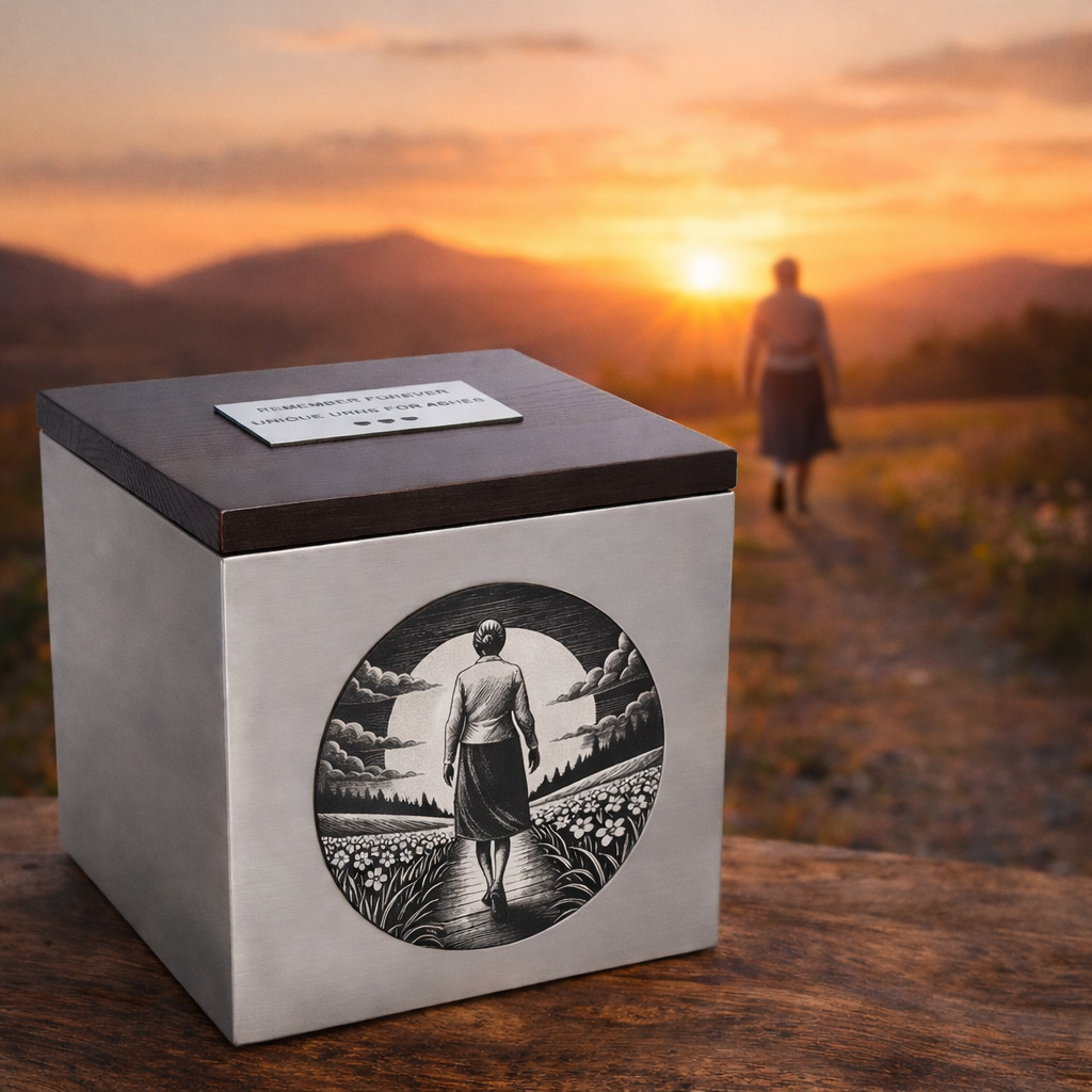 Cette urne unique est un hommage à une grand-mère, cette femme qui était le pilier, le cœur et le guide de la famille. Idéale pour ceux qui souhaitent honorer sa mémoire avec amour, respect et élégance.