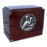 Wykonana z wysokiej jakości drewna mahoniowego urna łączy trwałość z ponadczasowym pięknem. Bogate, ciemne odcienie mahoniu zapewniają dostojny i elegancki wygląd, a dekoracyjne rzeźby dodają dodatkowego akcentu wyrafinowania. Dbałość o szczegóły wykonania gwarantuje, że ta urna będzie trwałym hołdem dla ukochanej osoby.