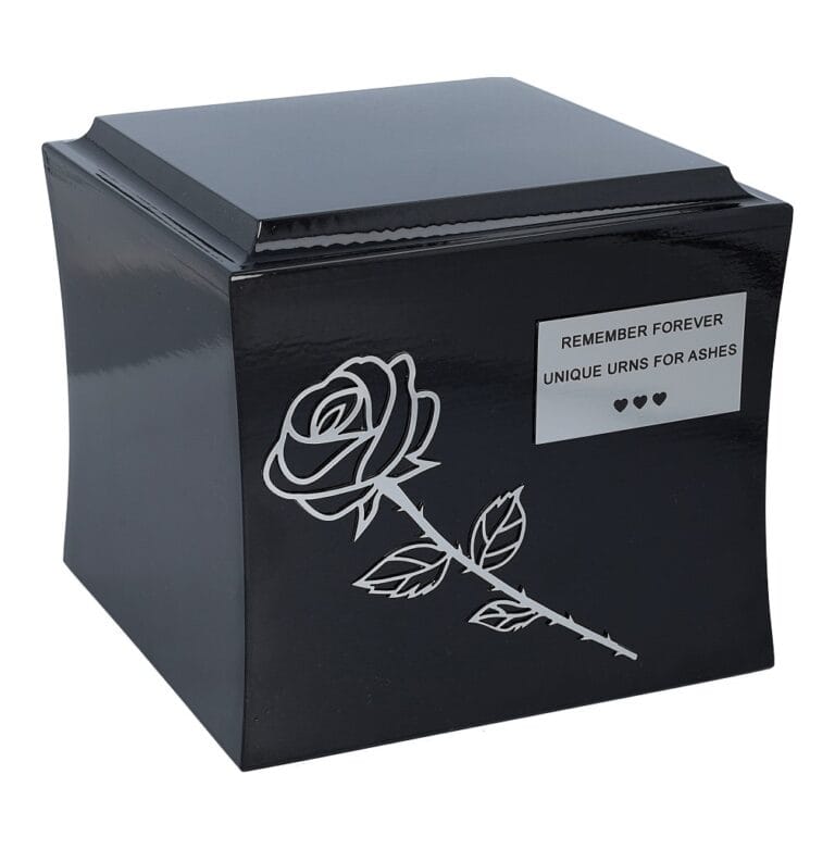 Róża symbolizuje miłość i niezapomniane wspomnienia, czyniąc urnę wyjątkowym hołdem dla osoby, która wnosiła piękno i ciepło w życie innych. Doskonale sprawdzi się jako pamiątka przechowywana w miejscu pamięci lub jako urna przeznaczona do pochówku, zapewniając trwałe i godne upamiętnienie.