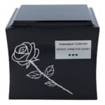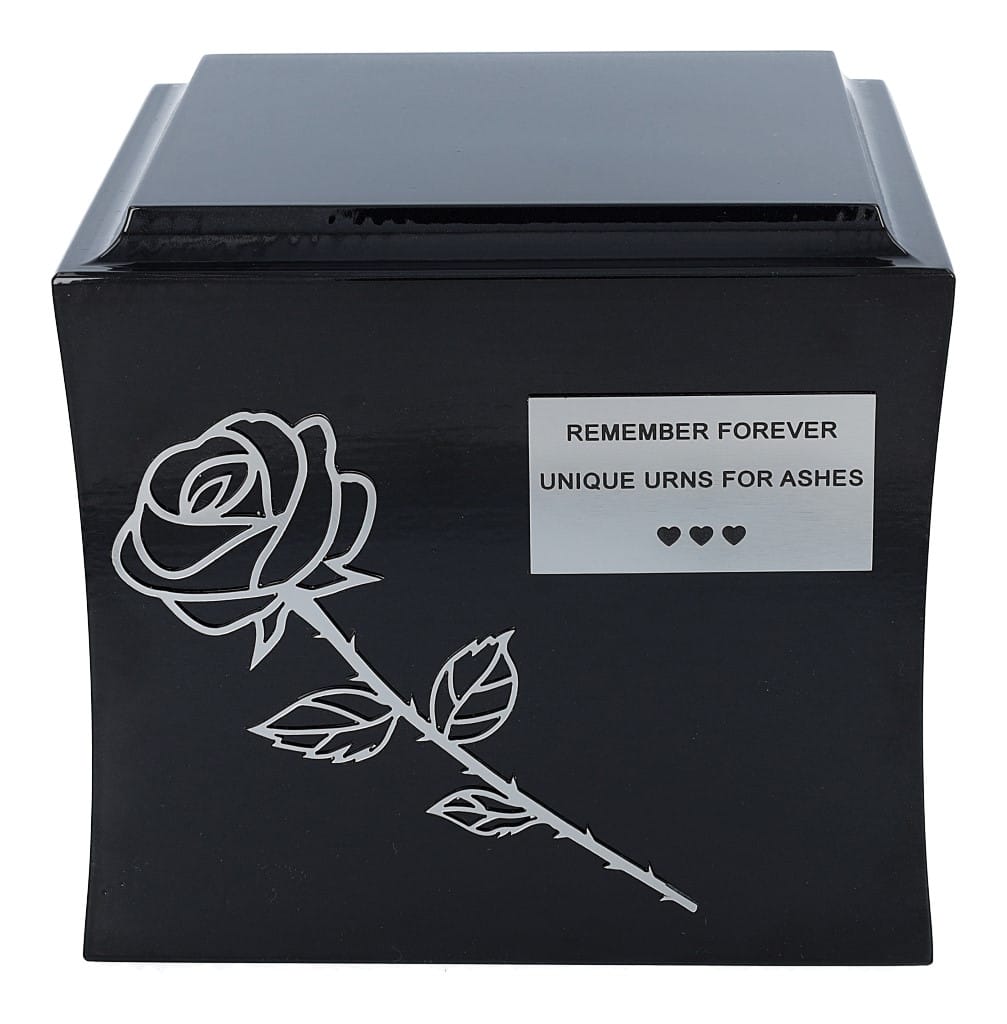 Uczcij pamięć bliskiej osoby dzięki drewnianej urnie z różą, symbolizującej miłość, wspomnienia i piękno, które trwa wiecznie. Wykonana z wysokiej jakości litego drewna, urna w kształcie skrzynki z delikatnie zaokrąglonymi krawędziami stanowi eleganckie i ponadczasowe miejsce spoczynku. Na froncie umieszczona została subtelna srebrna róża, będąca symbolem wiecznej miłości, oraz spersonalizowana tabliczka pamiątkowa, na której można wygrawerować imię, daty lub osobiste przesłanie, tworząc unikalną pamiątkę.
