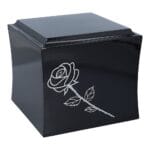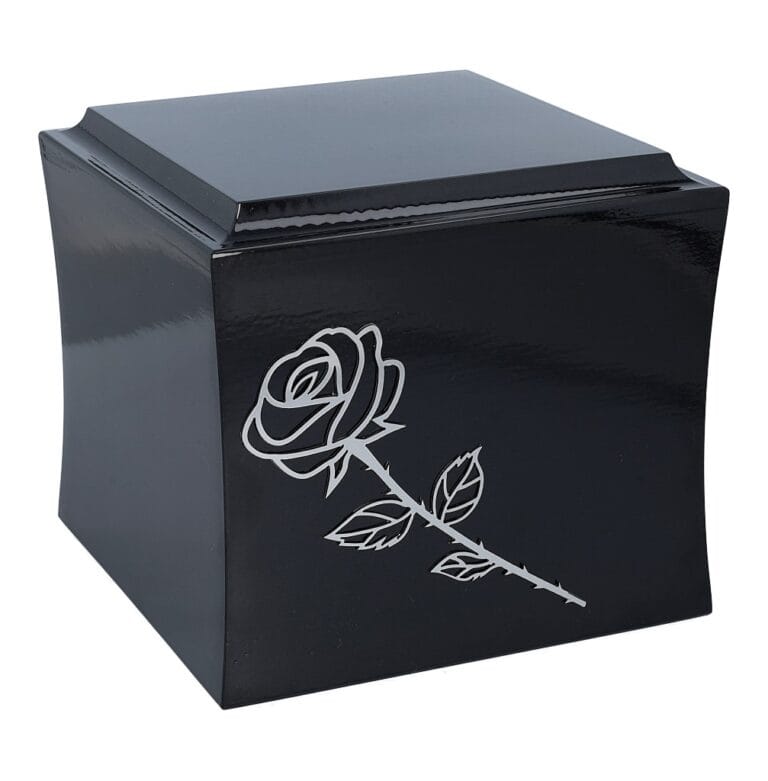 Róża symbolizuje miłość i niezapomniane wspomnienia, czyniąc urnę wyjątkowym hołdem dla osoby, która wnosiła piękno i ciepło w życie innych. Doskonale sprawdzi się jako pamiątka przechowywana w miejscu pamięci lub jako urna przeznaczona do pochówku, zapewniając trwałe i godne upamiętnienie.