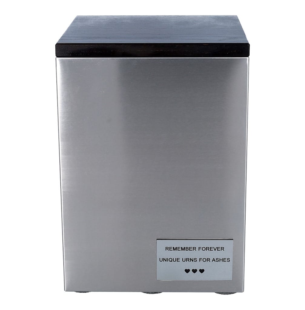 Wykonany w całości ze stali nierdzewnej, pojemnik jest trwały, odporny na uszkodzenia i ma elegancki, nowoczesny wygląd. Wewnętrzne wymiary (wysokość 23.5cm / 9.5″, szerokość 16.5 cm / 6,4″, długość 16.5 cm / 6,4″) są dopasowane do urny tymczasowej o maksymalnych wymiarach: wysokość 23 cm / 9″ szerokość 16 cm / 6.3″, dzięki czemu kapsuła idealnie mieści się w środku.