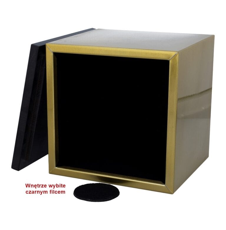 Szukasz urny, która łączy nowoczesność z elegancją? Złota urna w kształcie pudełka to wyjątkowy sposób na upamiętnienie bliskiej osoby. Wykonana z wysokiej jakości stali w złotym kolorze, wyróżnia się prostotą, trwałością i ponadczasowym stylem. Drewniana pokrywa dodaje jej ciepła i naturalnego charakteru, a wyłożone miękkim filcem wnętrze zapewnia godne przechowywanie prochów.
