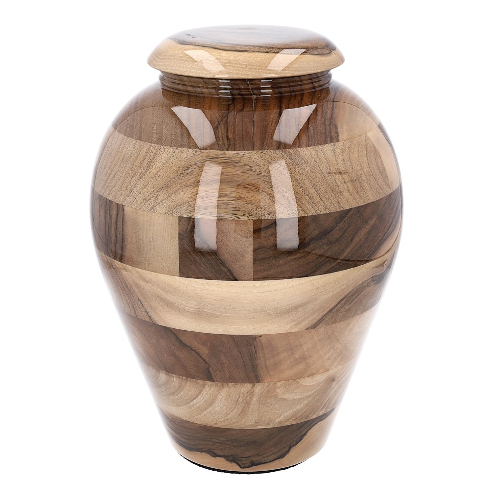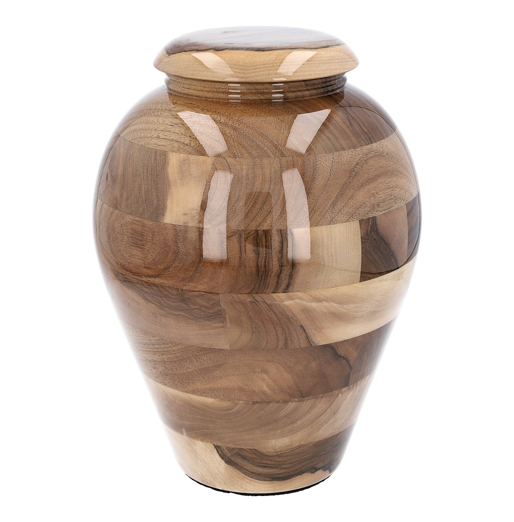 Piękna urna kremacyjna wykonana z drewna orzechowego. Ręcznie toczona, idealna na prochy osoby dorosłej. Bogactwo kolorów i usłojenie naturalnego drewna robi ogromne wrażenie. Urna zaprojektowana przez samą matkę naturę. Urna lakierowana na wysoki połysk.