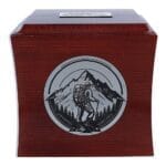 Mahoniowa urna z motywem gór to wyjątkowe miejsce na przechowywanie prochów ukochanej osoby. Starannie wykonana drewniana urna o lekko zaokrąglonych krawędziach. Urna posiada zdejmowane dno, przez które można umieścić prochy zmarłego.