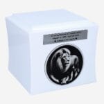 Uczcij siłę, odwagę i dziedzictwo bliskiej osoby dzięki urnie kremacyjnej z motywem lwa, będącej majestatycznym i dostojnym hołdem. Wykonana z wysokiej jakości litego drewna w kształcie skrzynki. Urna wyróżnia się starannie wygrawerowanym wizerunkiem lwa – symbolem odwagi, mocy i mądrości. Spersonalizowana tabliczka pamiątkowa umożliwia dodanie imienia, dat oraz osobistej dedykacji, nadając urnie wyjątkowy i głęboko symboliczny charakter.