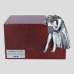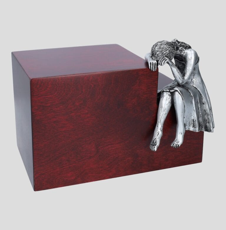 Introducing our exquisitely designed artistic cremation urn, a loving tribute to honor the memory of your beloved. Crafted with utmost care and attention to detail, this urn features a simple yet elegant box design, embellished with a breathtaking silver crying women figurine.