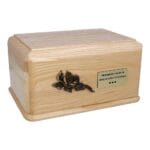 The light wood used in the construction of this urn showcases the unique grain patterns and light tones of ash wood. Each urn is handcrafted, ensuring that no two pieces are exactly alike, making it a truly one-of-a-kind memorial. The natural variations in the wood create a sense of authenticity and add to the overall beauty and charm of the urn.