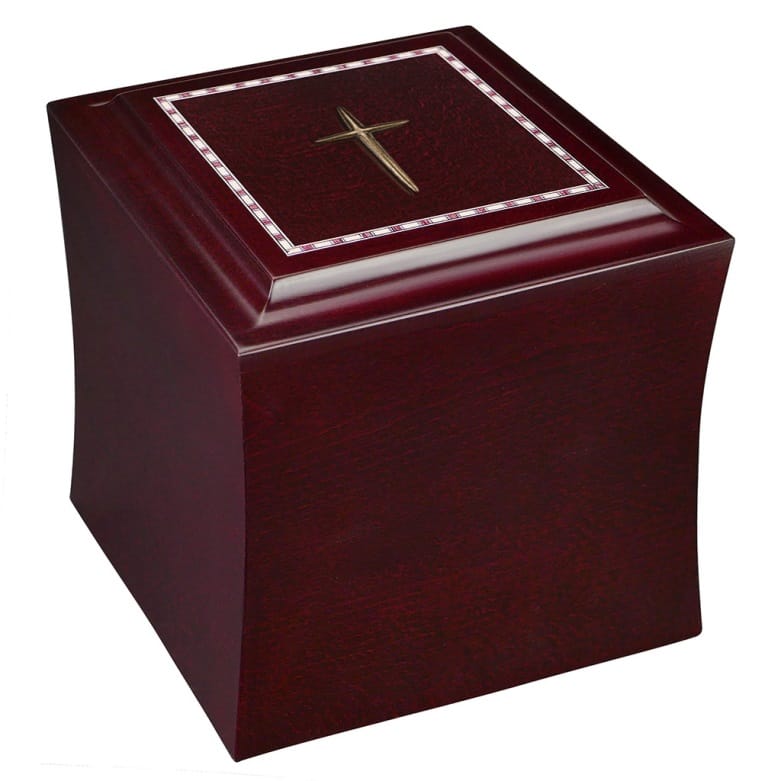 The intricate grain patterns of the mahogany wood are beautifully highlighted by the expert craftsmanship of our skilled artisans, making each urn a unique and one-of-a-kind piece of art.