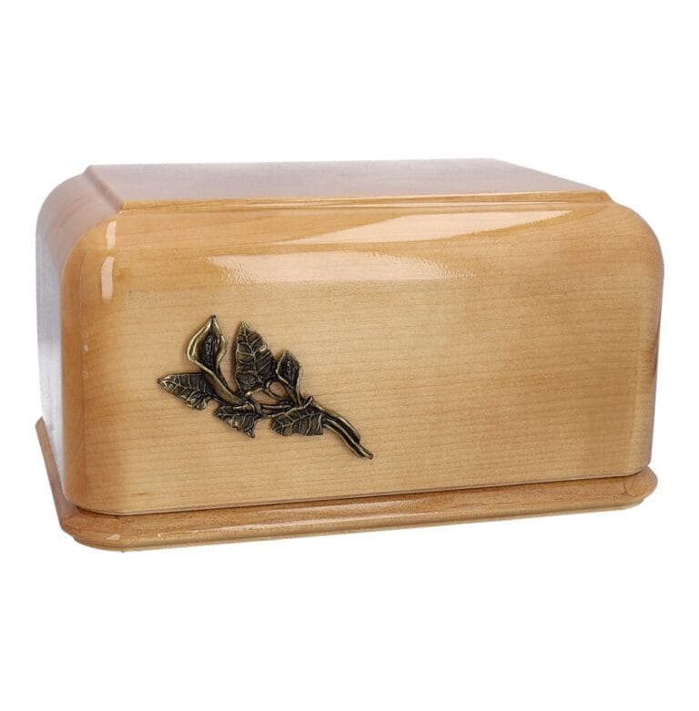 Our Natural Wooden Cremation Urn is a beautifully crafted tribute to honor the life and memory of your loved one. Made of premium quality oak wood, this urn contain a stunning cross or calla lily emblem that symbolizes the eternal beauty and purity of your loved one’s spirit.