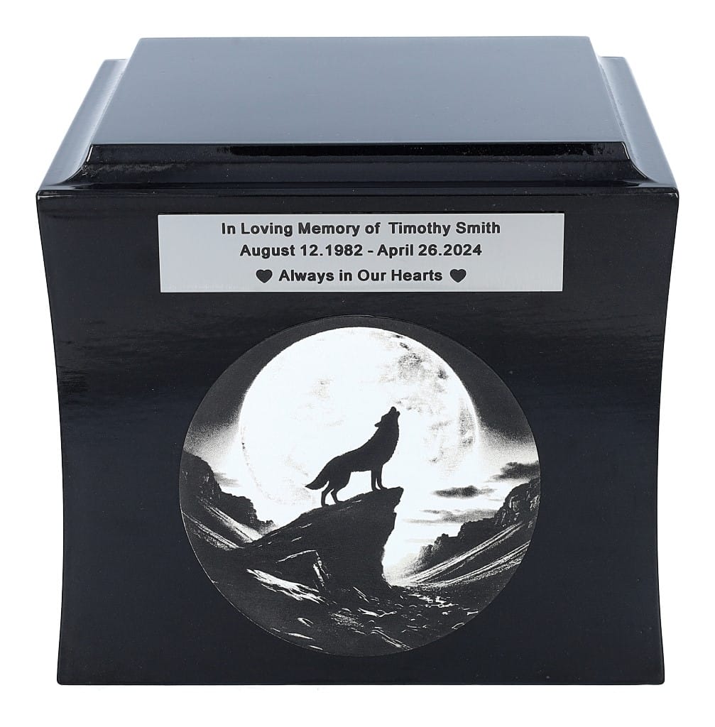 Honor the memory of a loved one with the Wolf-Themed Cremation Urn, a symbol of strength, independence, and an untamed spirit. Crafted from premium solid wood, this urn features a beautifully engraved lone wolf, representing resilience, courage, and freedom. A perfect tribute for those who walked their own path in life, embracing the wild and the unknown.