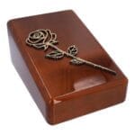 The natural beauty of the wood complements the symbolic rose, creating a touching memorial piece. Honor your cherished memories with this beautiful urn.